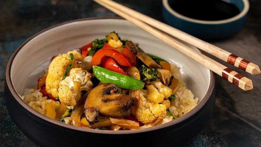 Овощи: брокколи, бок-чой, грибы, баклажаны и зеленая фасоль впитывают соус и подчеркивают его умами-нотки.